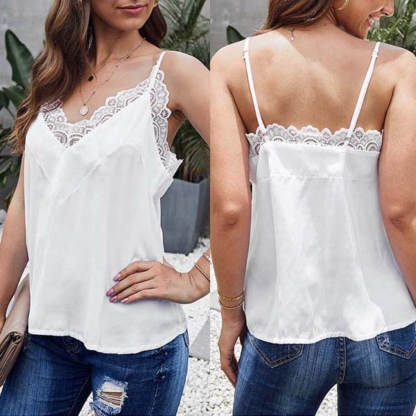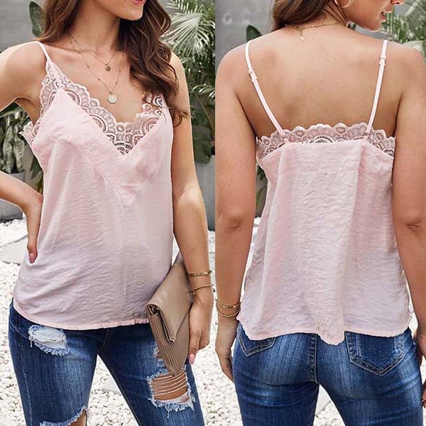 To welcome the hot summer,you need such a sling top.It is finished with v-neck and lace