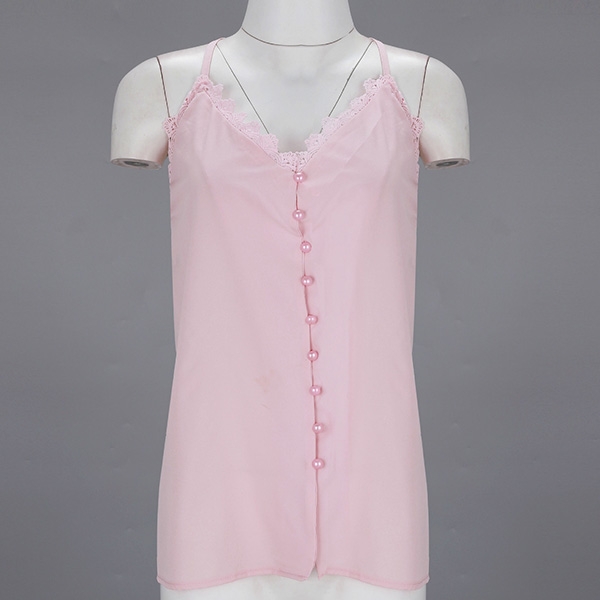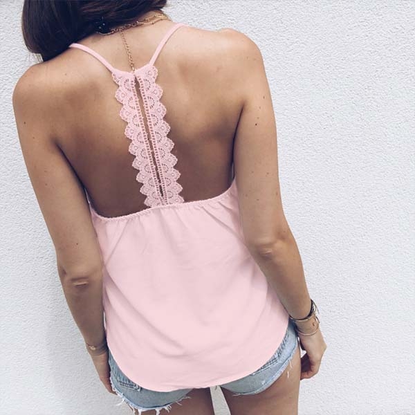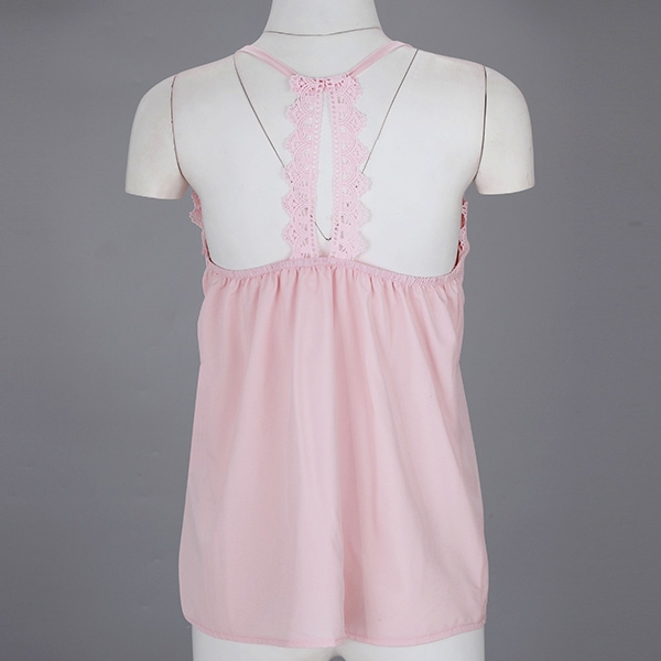 This cami top comes with a sweet and stylish pink tone,its backless,v-neck and lace spliced