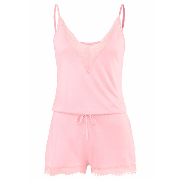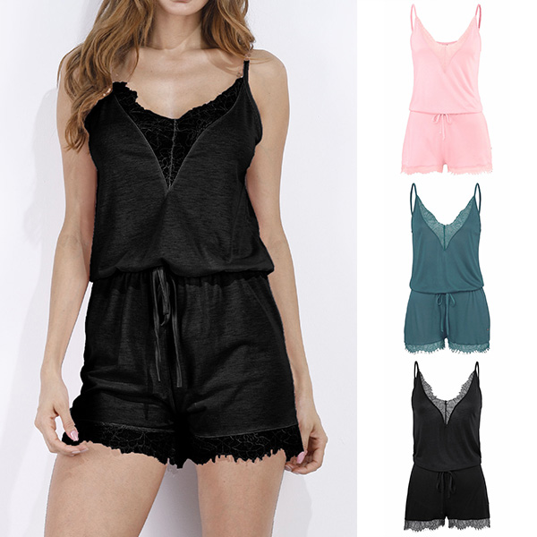 Embrace your sun-soaked weekends with this romper! Sling style,designed with backless,v-neck and lace spliced details