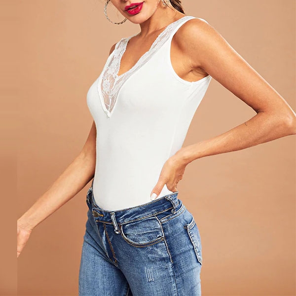 v-neck and lace spliced details will offer you a sexier look,while the fit silhouette design can sketch out