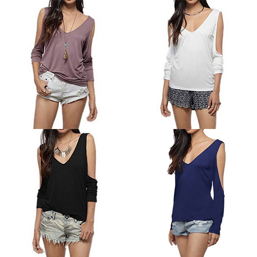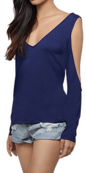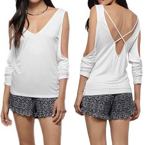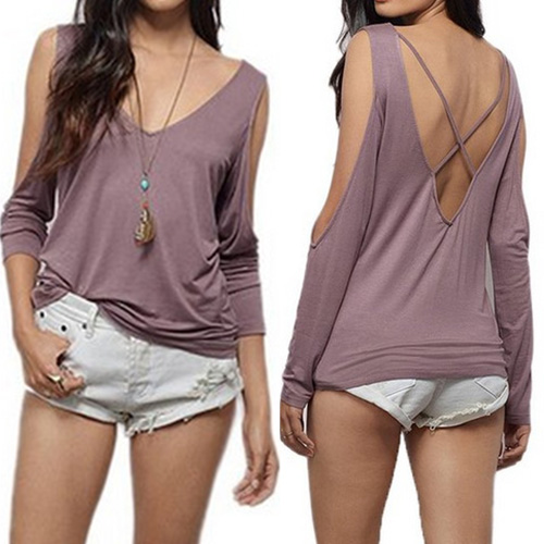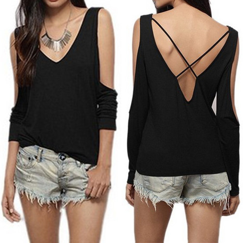 Its flirty details such as backless,deep v-neck and off-shoulder design make this t-shirt look