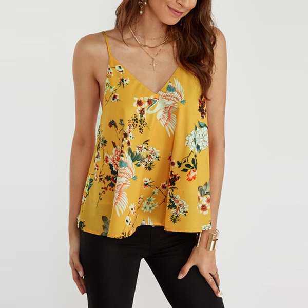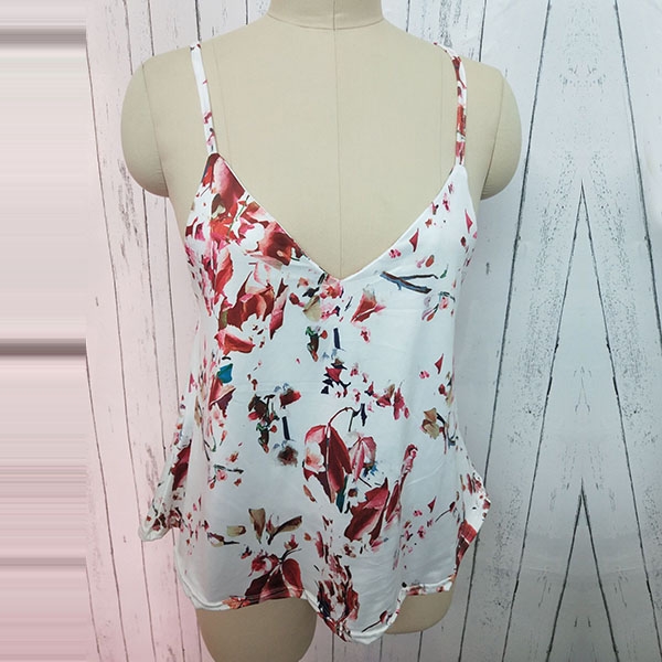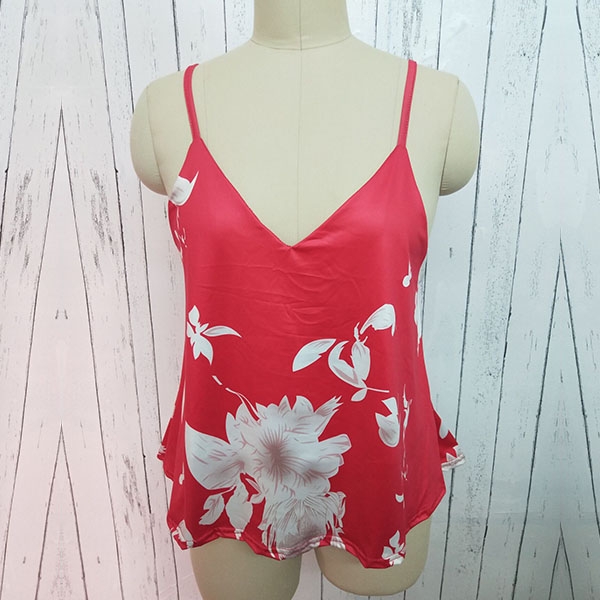 Sling style,with backless and v-neck design,this printed cami top is your perfect choice in these