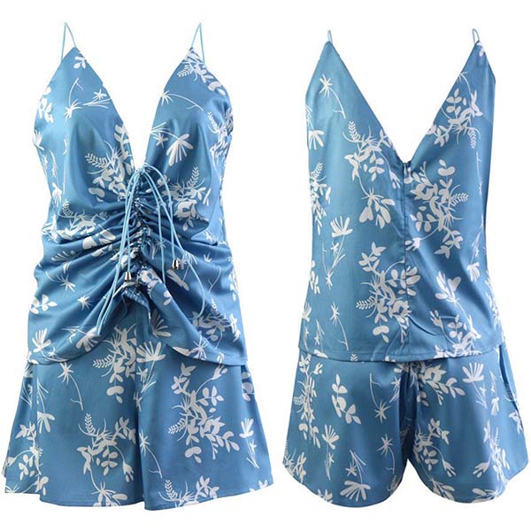 Including a backless v-neck cami top and a high waist shorts,this two-piece set is perfect for