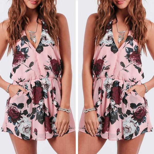 romper! Halter style,with backless,v-neck and vibrant floral print,this wonderful piece can make you look