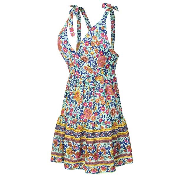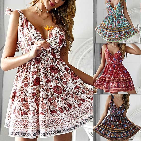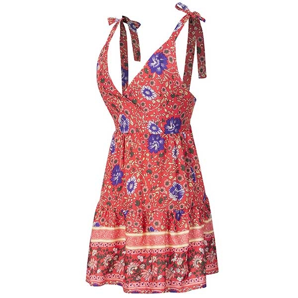 beautiful dress. Its vibrant floral print design can help you win more eyes. Sling style,with backless