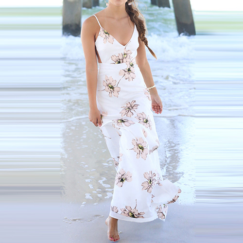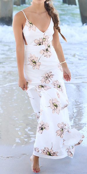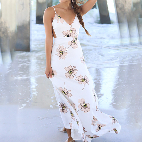 stand out. Sling style,with backless,deep v-neckline and vibrant floral print,sexy and charming.