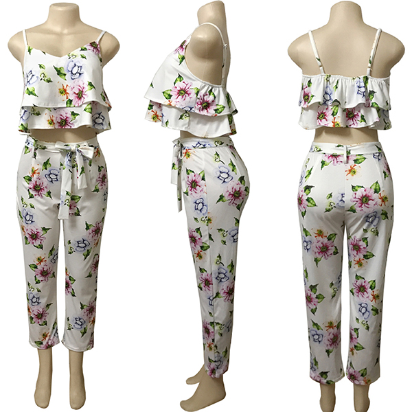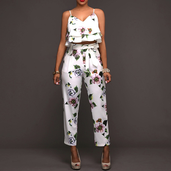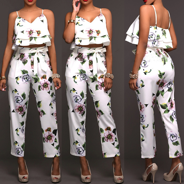 This two-piece set makes it easy for any girl to look effortless sexy and charming. Boasts vibrant floral print,including a