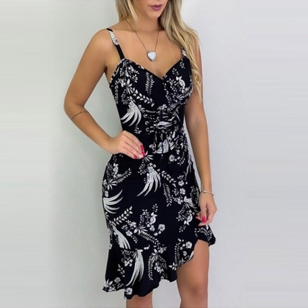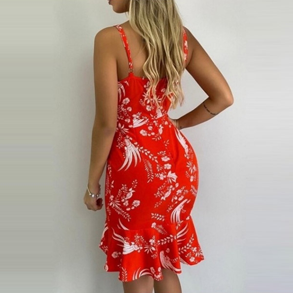 Sling style,with backless,v-neck and ruffle hem design,sexy yet alluring.