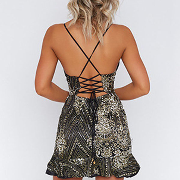 into this breathtaking dress. Sling style,the backless,v-neck and ruffle hem design make it look so sultry,