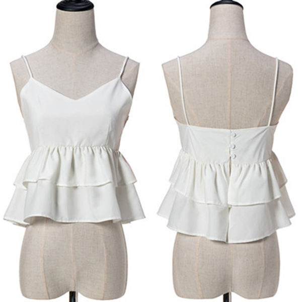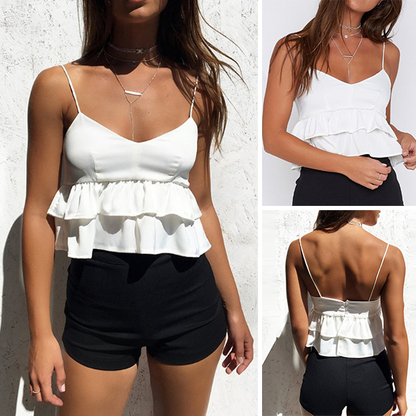 Embrace a sunny day with this cami top. Solid color style,finished with backless,v-neck and ruffle hem,