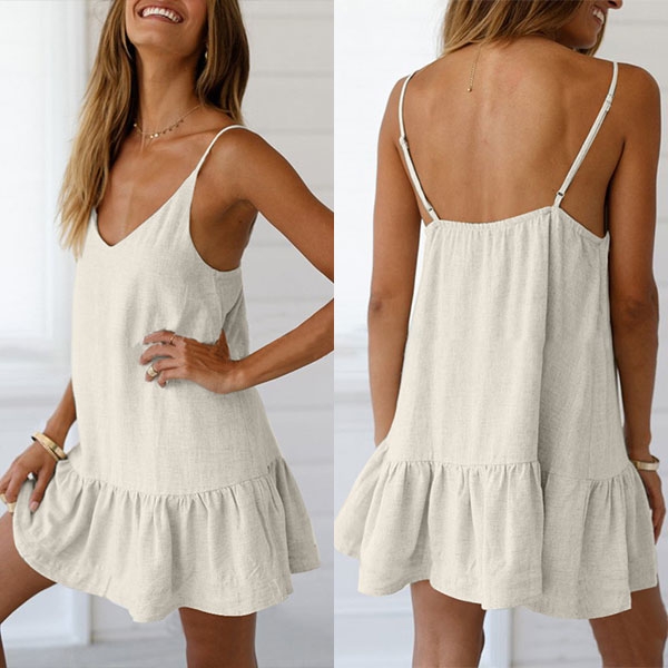 Greet the sunny summer days with a delightful dress such as this creation. Sling style,with backless,