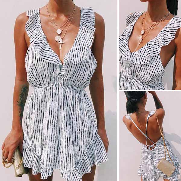 deep v-neck and ruffle design make this piece look so sexy and alluring,while the elastic waist design can
