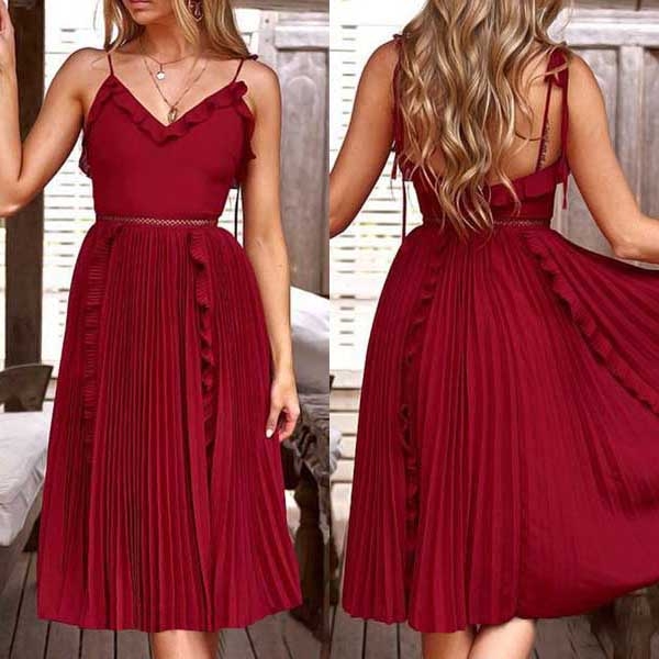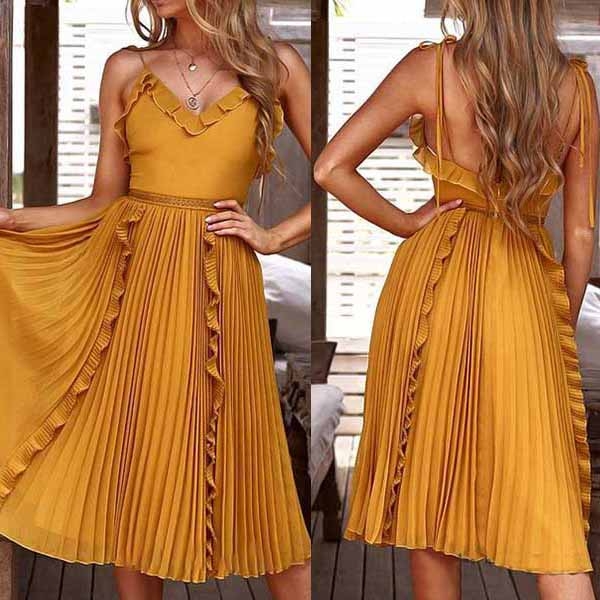 with backless,v-neck and ruffle design,which make this piece look so attractive. The pleated design