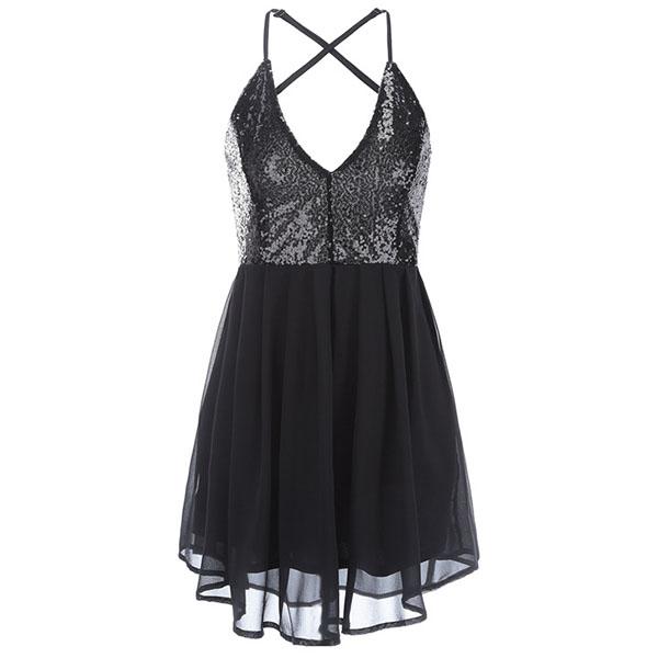 Sling style,finished with backless,deep v-neck and sequin spliced design,sparkle,gorgeous and alluring.