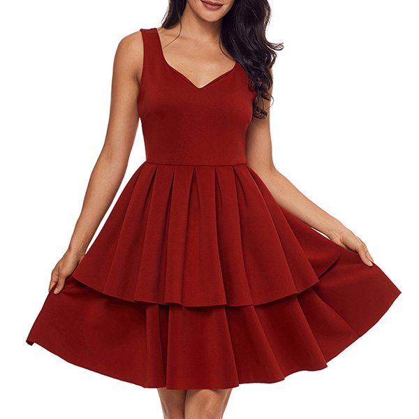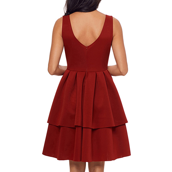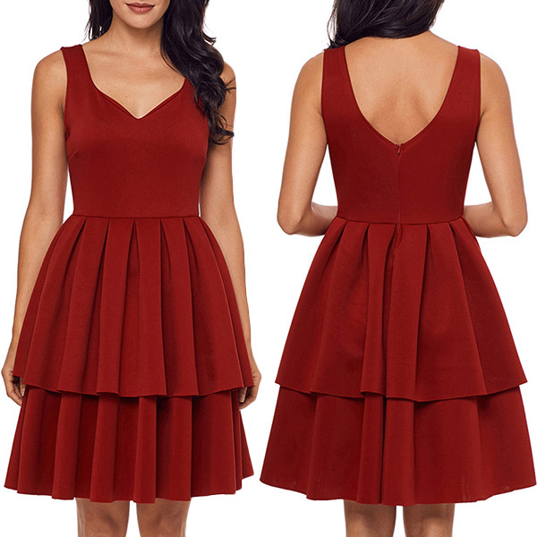 this dress. It is styled with backless,v-neck,high waist and dual-layer hem,this delicate dress can