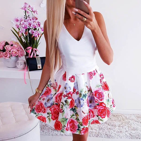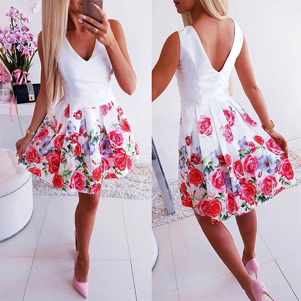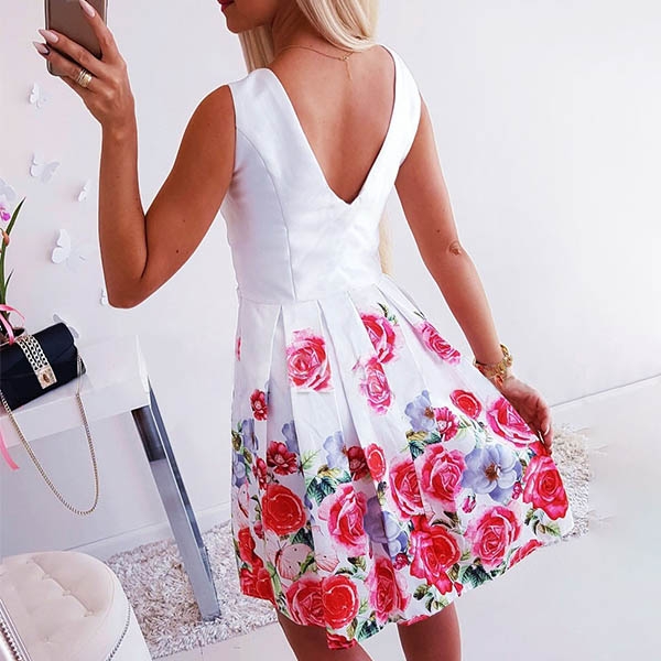 room for this dress in your wardrobe? Its backless,v-neck and eye-catching printed details make