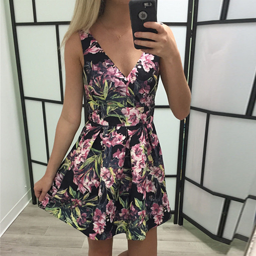 romantic printed pattern,with backless and deep v-neck design makes it look more sexy and