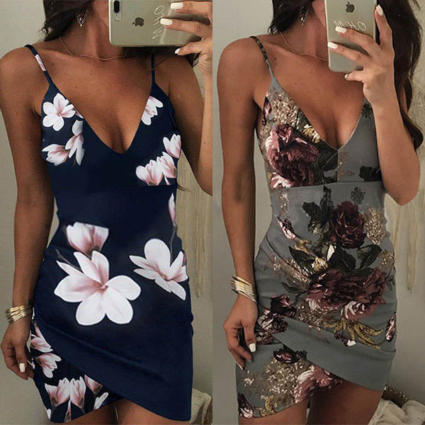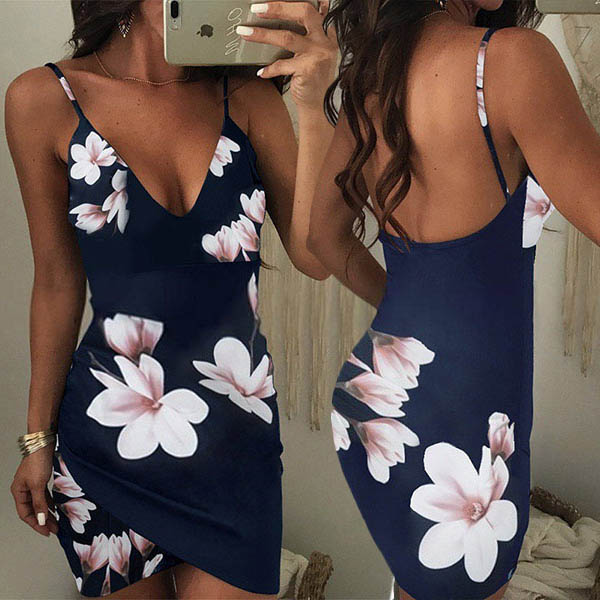 Sexy Backless V-neck Slim Fit Printed Sling Dress(A bit short)