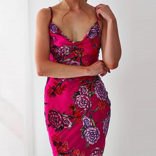 and a fit silhouette,this dress can display your slender figure. Moreover,the printed details will
