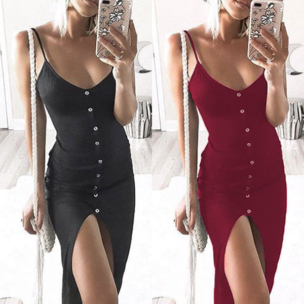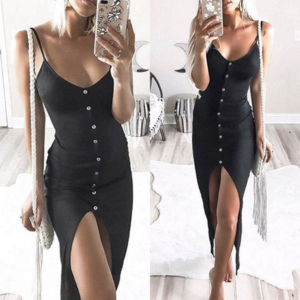 v-neck and slit hem design make this piece look sexy and charming,while the button details will further