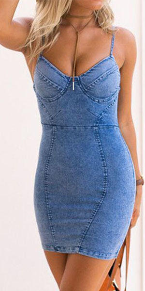 Showcase your urban cool sense of style through this faded denim dress. Sling style,with backless,