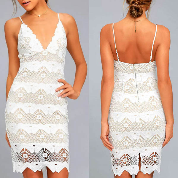lace dress. Sling style,with backless,v-neck and a fit silhouette,this delicate lace dress is perfect fit for