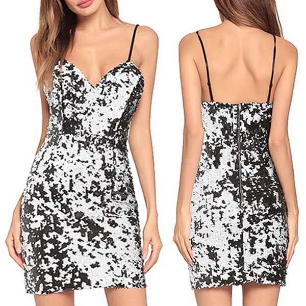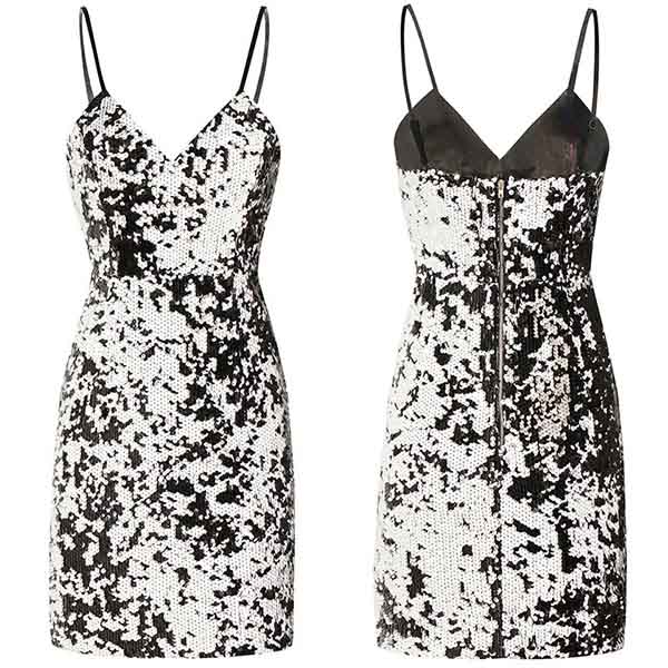 Sling style,with backless,v-neck and fit silhouette,this dress can give you an alluring style.And the sequin