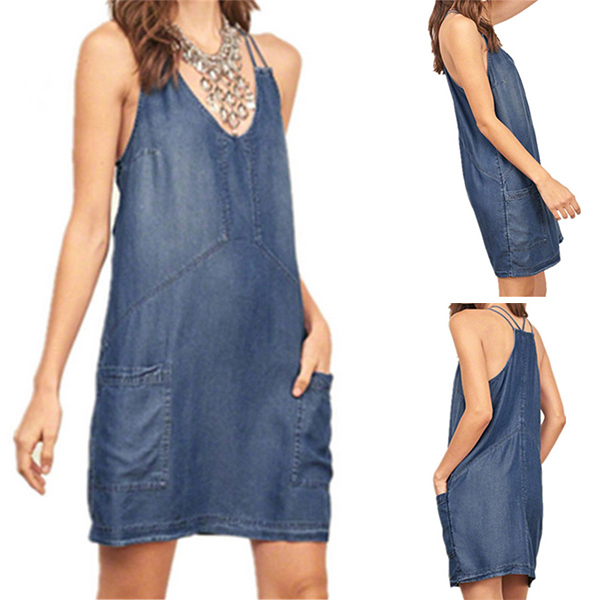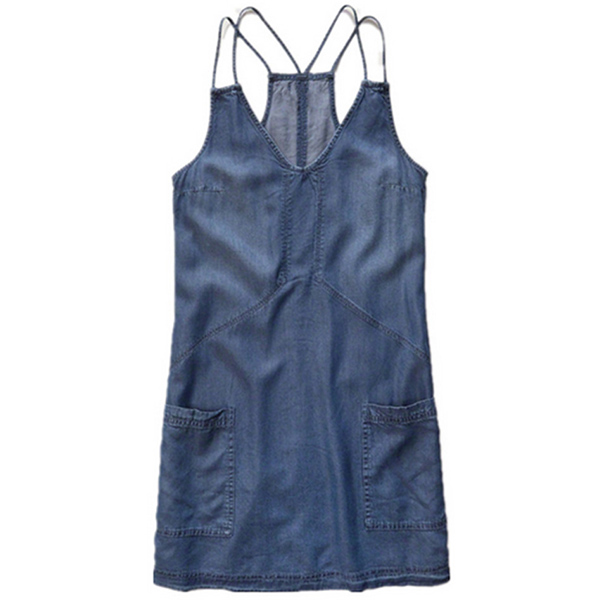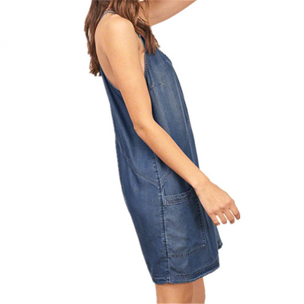 Sling style,with backless and v-neck design adds some sexy and flirty flavor,while its loose silhouette and hand pockets design