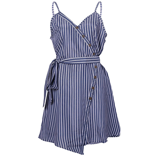 This dress is designed with striped element,stylish and popular. Sling style,the backless and v-neck
