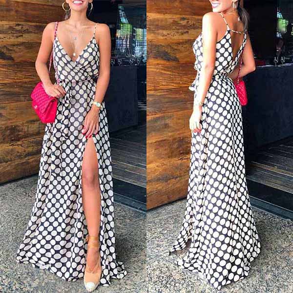 charming. Sling style,the backless,v-neck and slit hem design make this piece look more alluring.