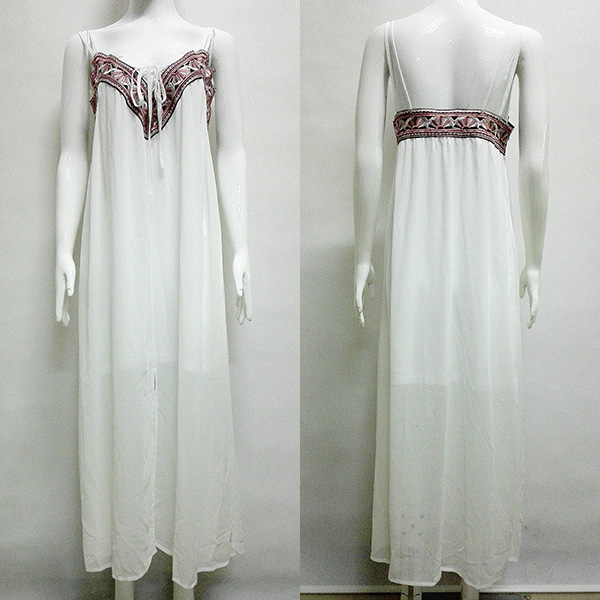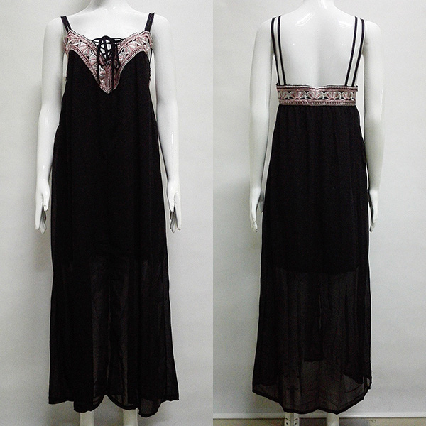Sling style,with backless,v-neck and slit hem design,sexy and alluring. Moreover,the embroidery spliced details