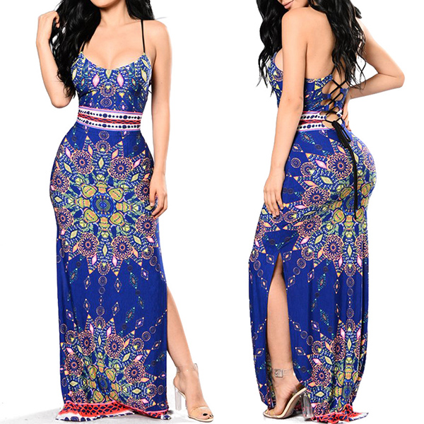 Show off your feminine and flirty side through this dress. Sling style,accompanied with backless,v-neck,slit hem and a maxi length,