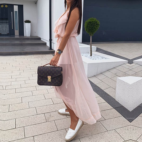 like backless,v- neck,slit hem and ruffle design will offer you a