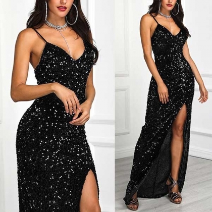 Wanna shine at your next event? Then we suggest you choosing this sequin dress.Sling style,
