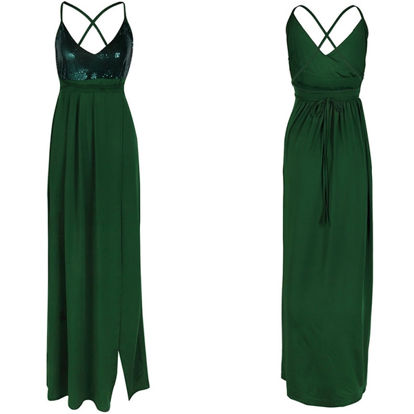 v-neck and slit hem design,which make it look so sexy and alluring. And the sequin spliced details will