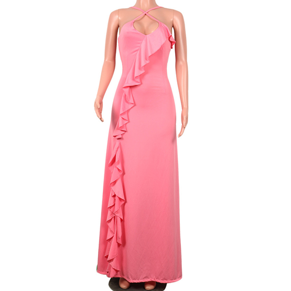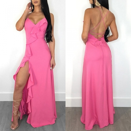 backless,v-neck,slit hem and ruffle design make this piece look so sexy and alluring. Paired with