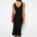 this dress in your team. The solid color tone design aims to give you an elegant vibe,while the backless,