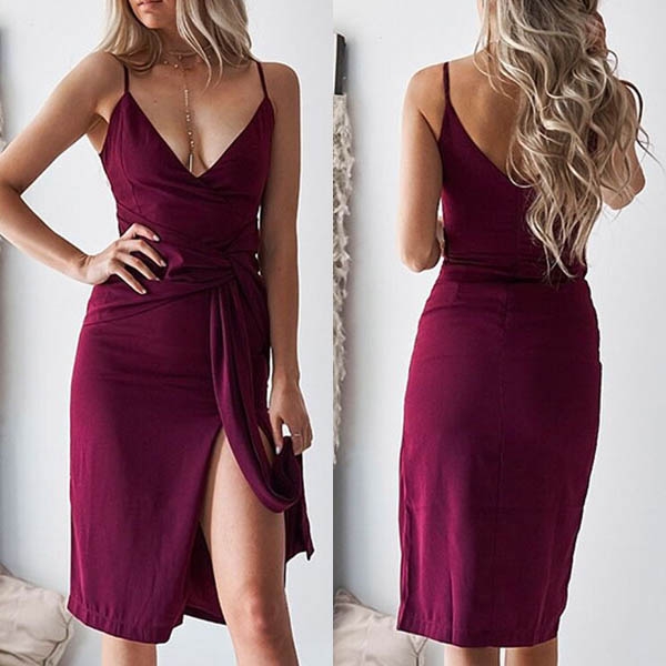 make your eyes focused on this dress. Sling style,its alluring design details like backless,deep v-neck