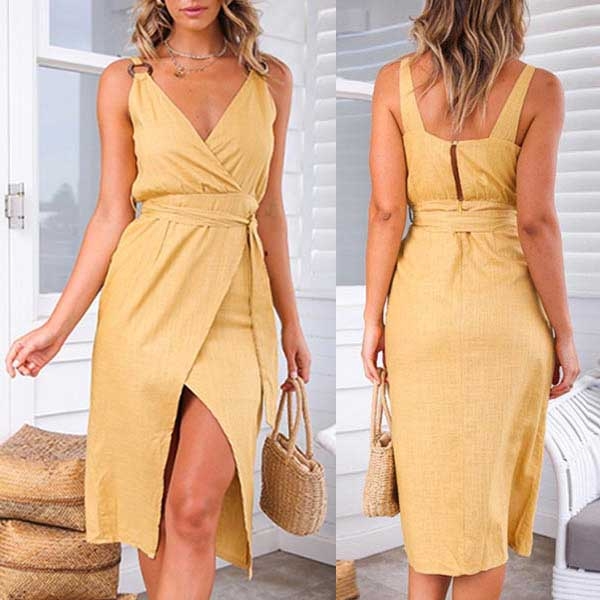 v-neck and slit hem design,which can easily offer you a flirty look. For yoru dinner dates or weekend