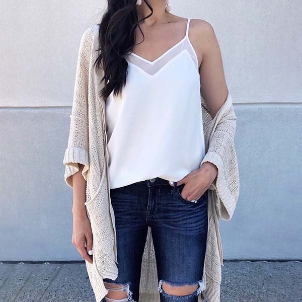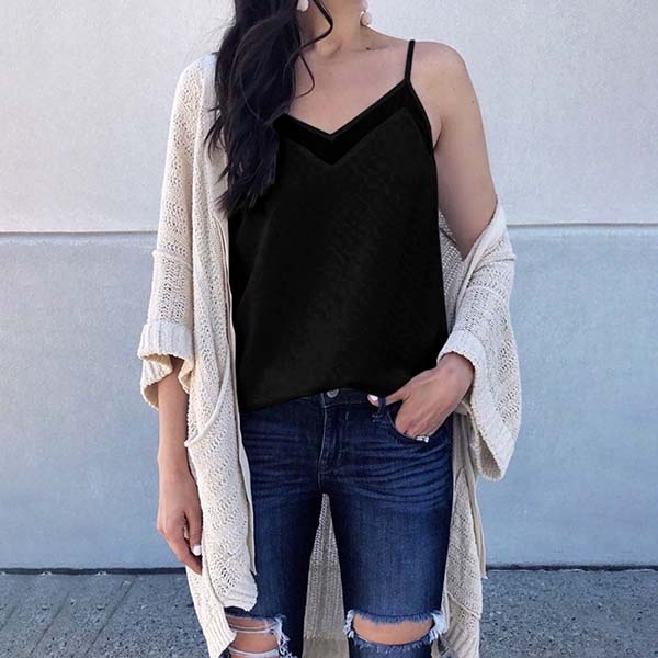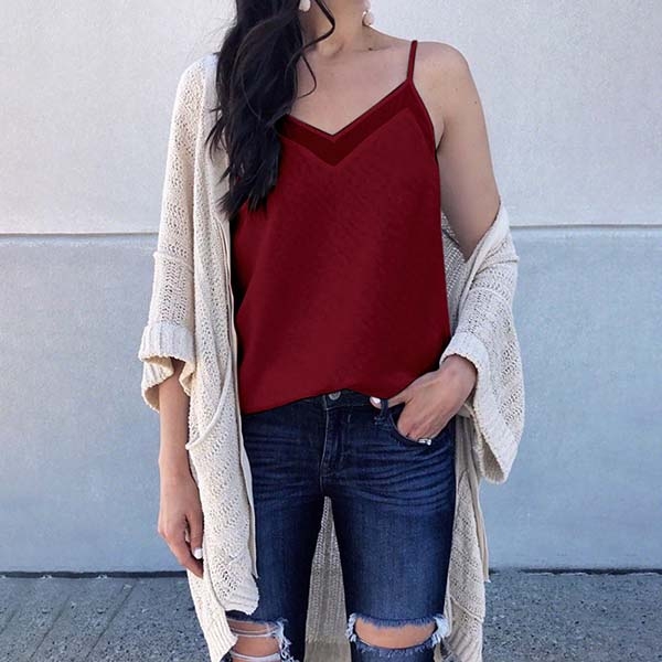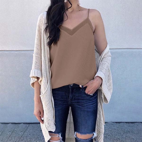 This chiffon cami top would be your wise choice in these sunny summer days. Solid color tone
