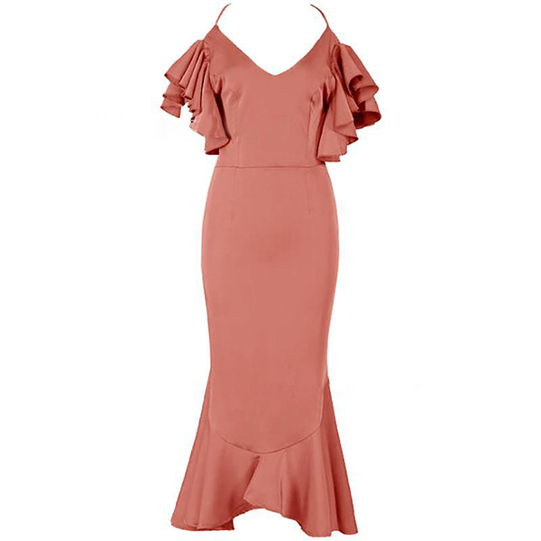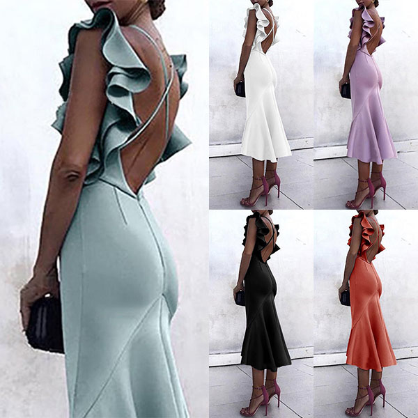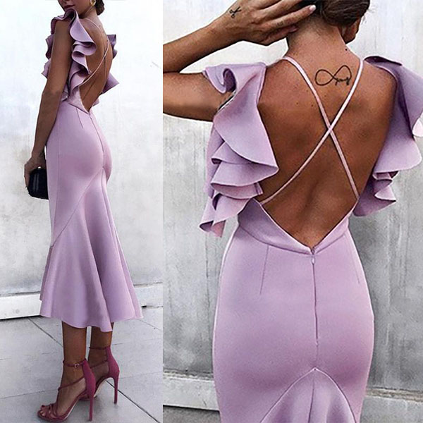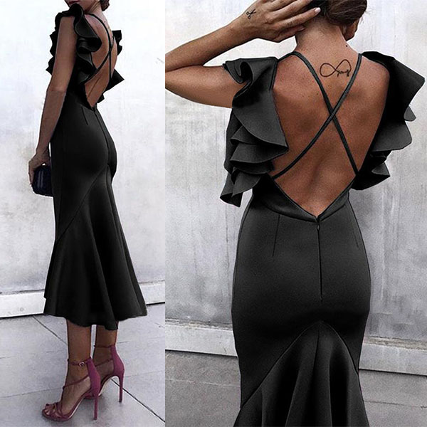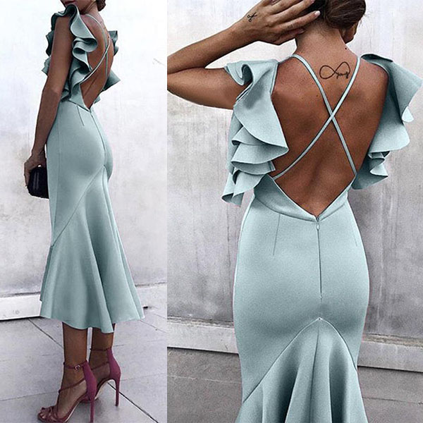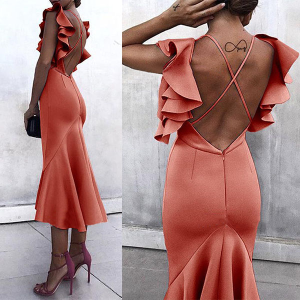 Sling style,its stunning details like backless,v-neck and ruffle design make this piece look so sexy and alluring.