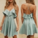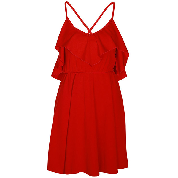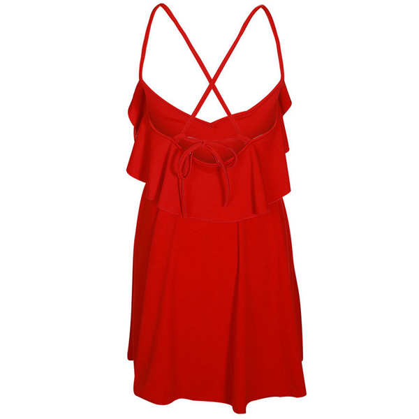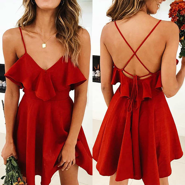 This dress boasts a bright and eye-catching red tone,finished with backless and v-neck design,
