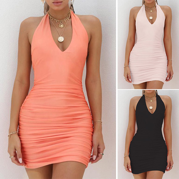 You can have a sexy and charming party look when you don this dress. Halter style,with backless and