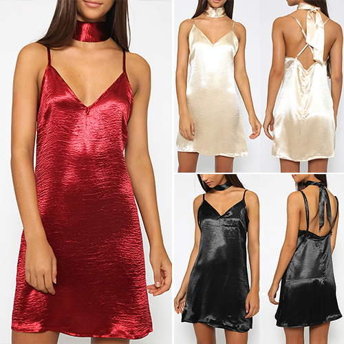 Showcase your sexy and sultry style via this dress. Sling style,with backless and deep v-neckline
