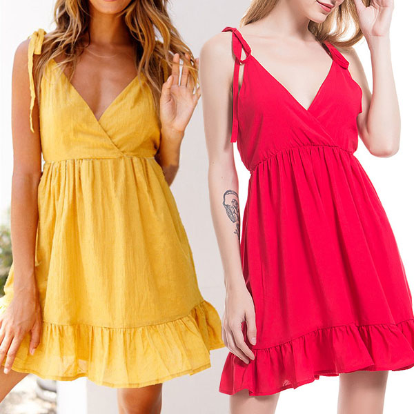 Crafted in a solid color,this dress can give you a sexy and charming look with its backless and v-neck design.