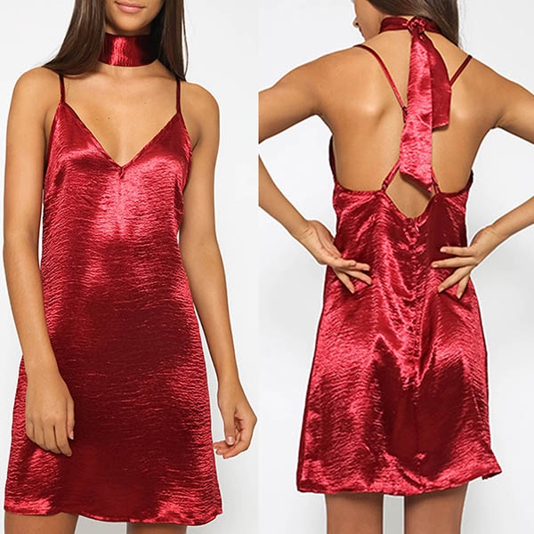Sling style,with backless and v-neck design,sexy and alluring. What's more,the choker strap design further