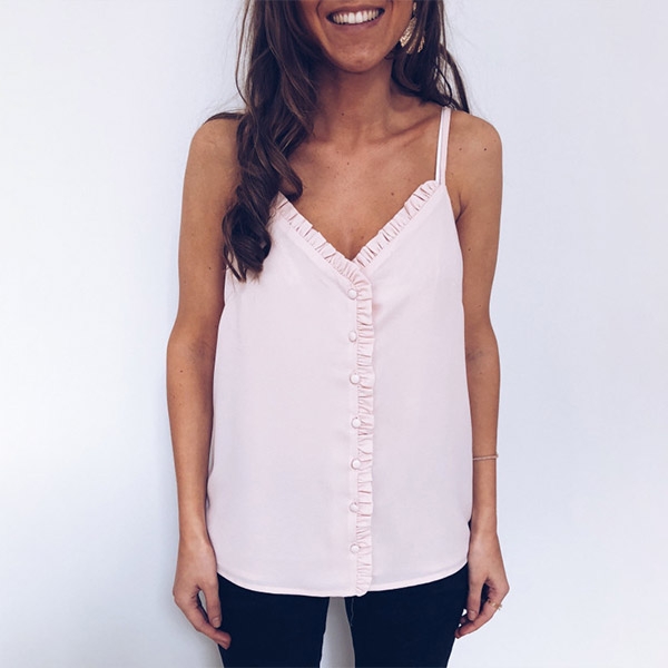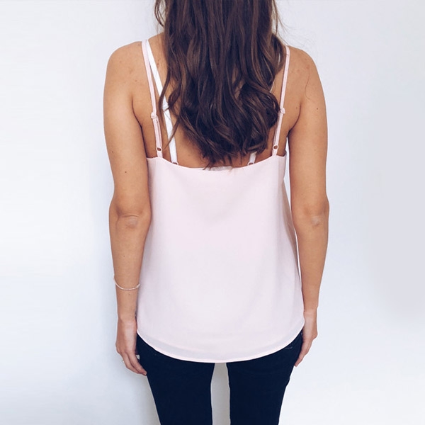 Portray your girlish side through this cami top. It boasts a sweet pink tone,the backless and