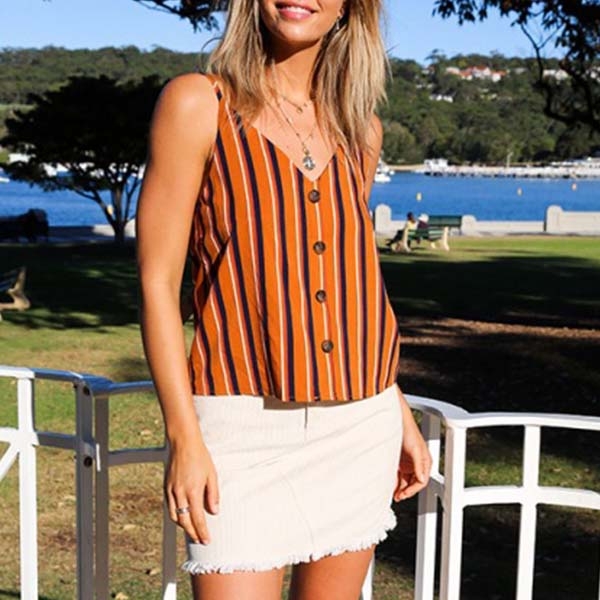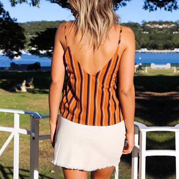Expose a hint of your charming skin with this cami top. Designed with striped element,stylish and popular,