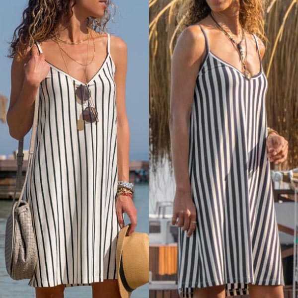 Greet these sunny weekends with this relaxed dress. Sling style,with backless and v-neck design,