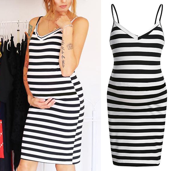 For these pregnant women,this striped dress is a good chance to showcase their sexy and feminine side.